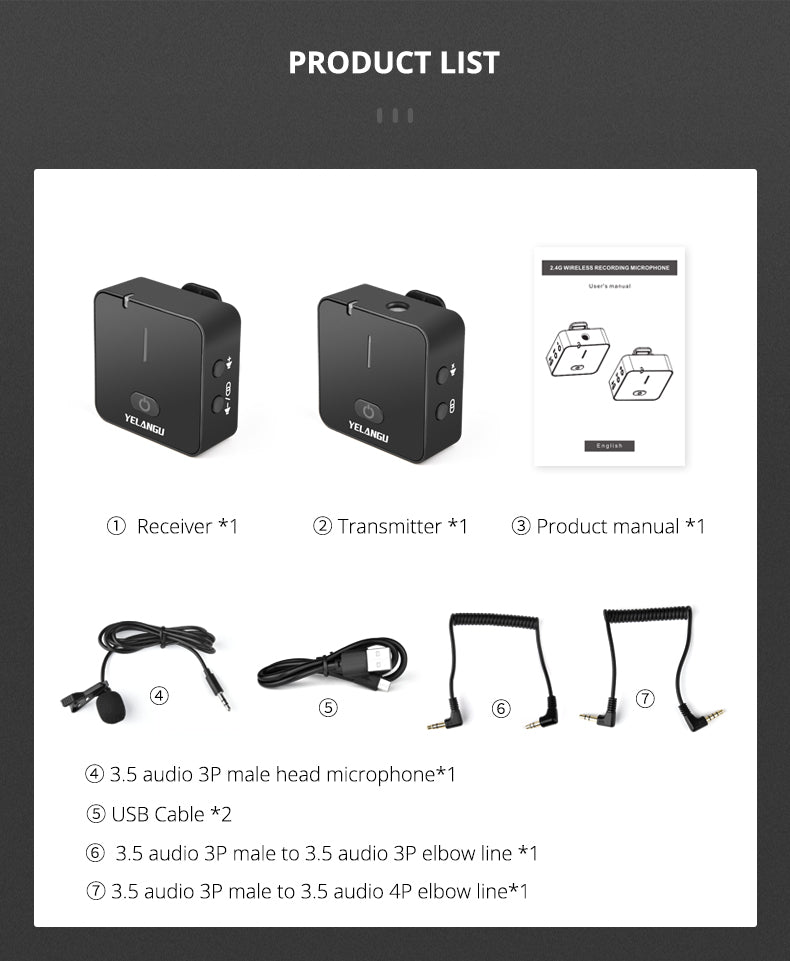 YELANGU MX5 Portable Wireless Microphone Lavalier Interview Recording for Mobilephone DSLR Camera iPhone Xiaomi