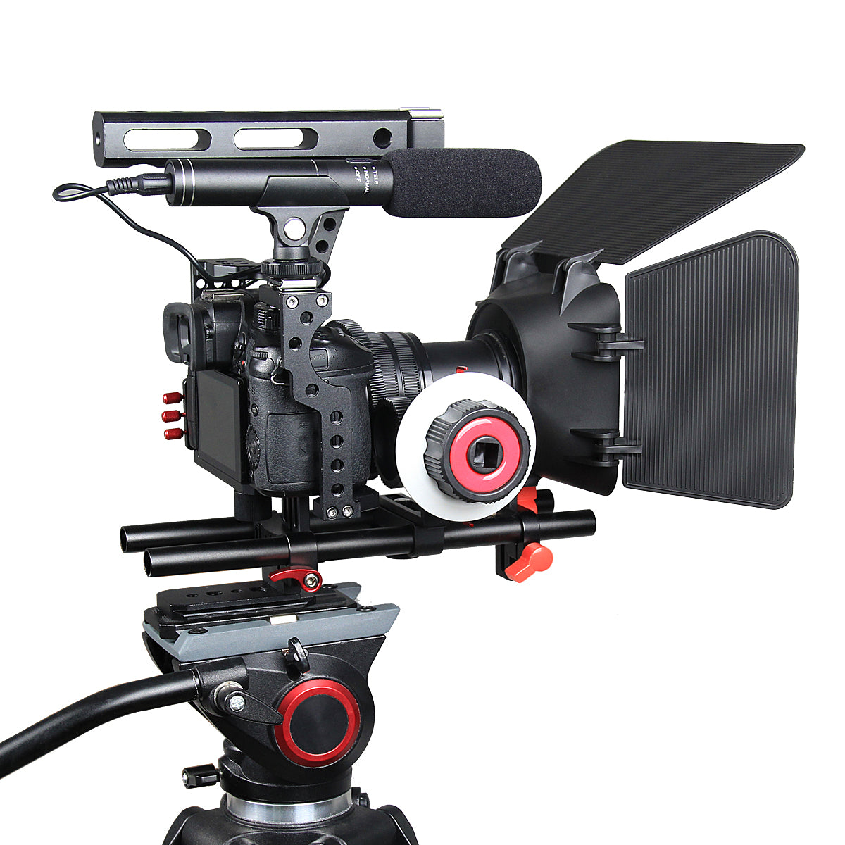 YELANGU C500 DSLR Video Camera Cage Kit With Follow Focus Matte Box, Support for Mirrorless Camera
