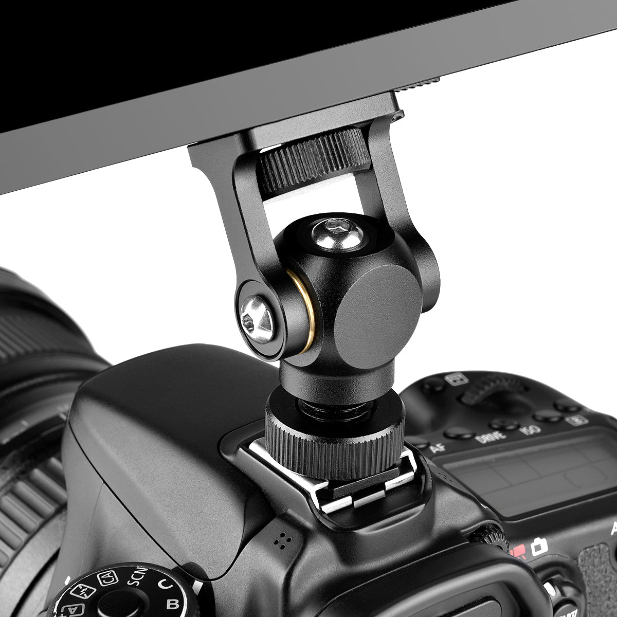 【EASY ADJUSTMENT】Hold fast and adjustable to position it up to 180° as per your need, and two screws are applied for damping based on the weight of monitors, which enables you to have a better monitoring in shooting scenarios