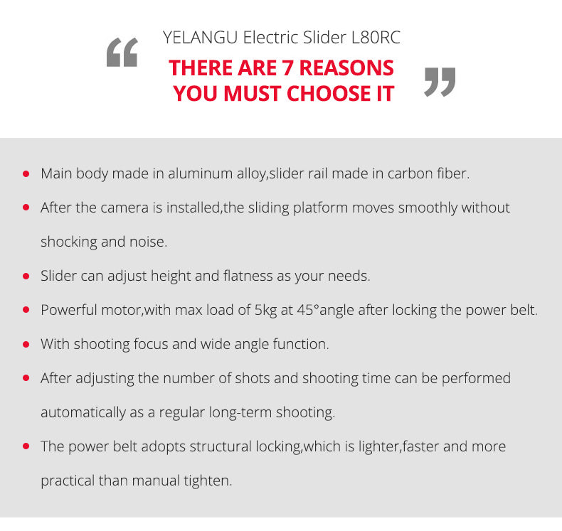 YELANGU L80RC Professional Motozied Video Camera Slider Carbon Fiber Track Rail with Time Lapse Wireless Control
